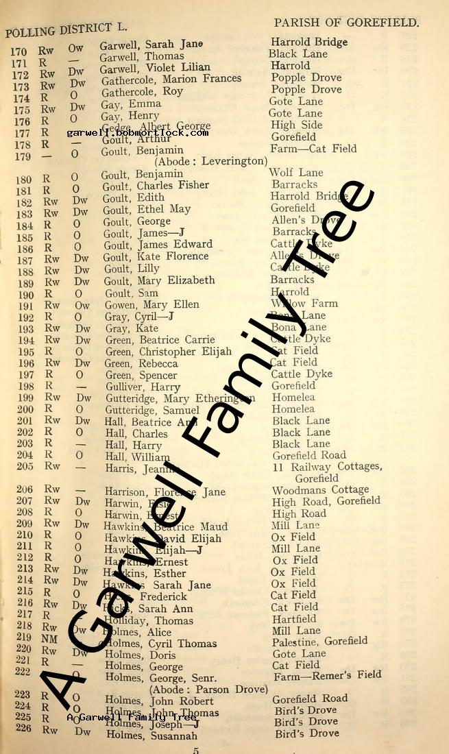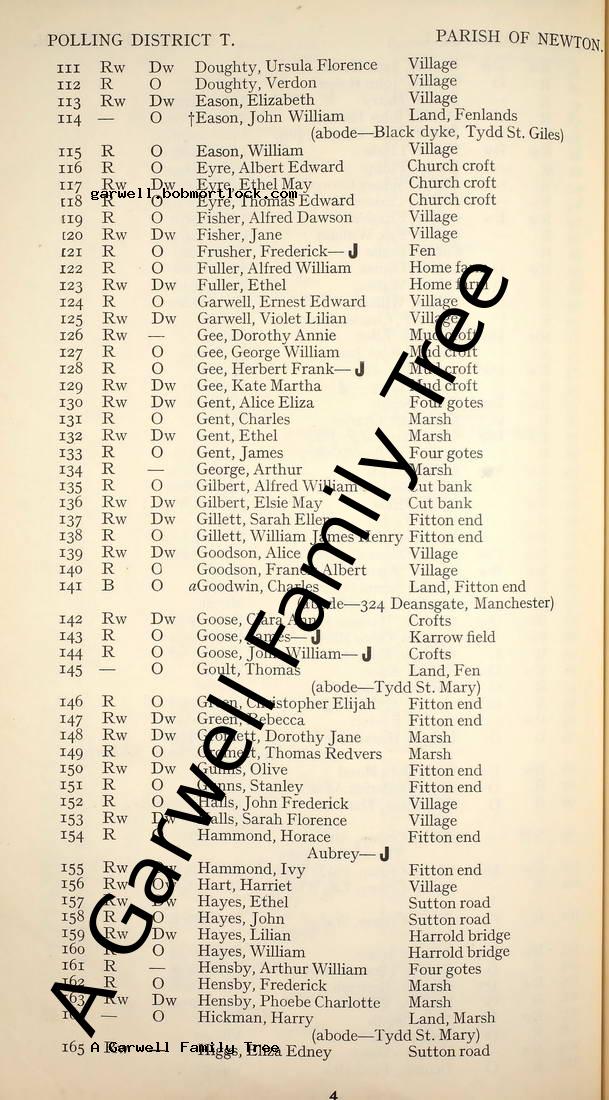 | Residence | 1930 (Age 34) Gorefield, Cambridgeshire, England Address: Harold |