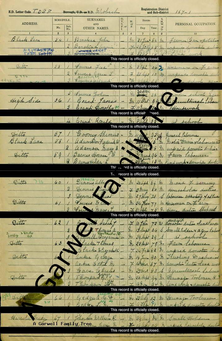 | Census | 29 September 1939 (Age 67) Wisbech, Cambridgeshire, England Address: Back Lane, Gorefield