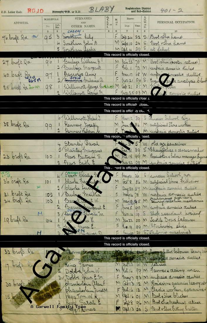 | Census | 29 September 1939 (Age 35) Leicester, Leicestershire, England Address: 25 Croft Road, Blaby