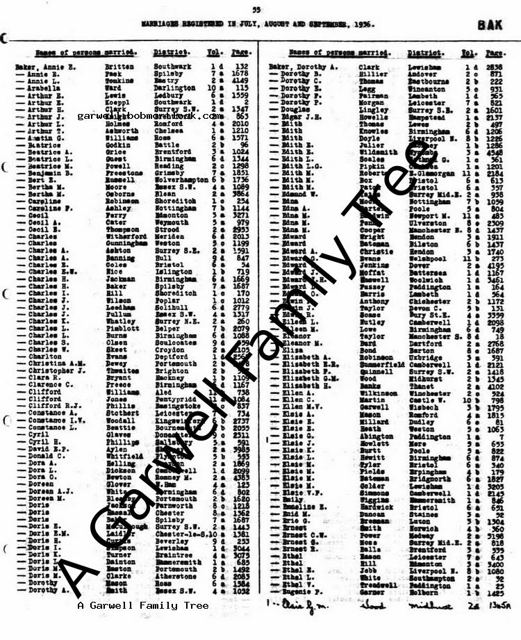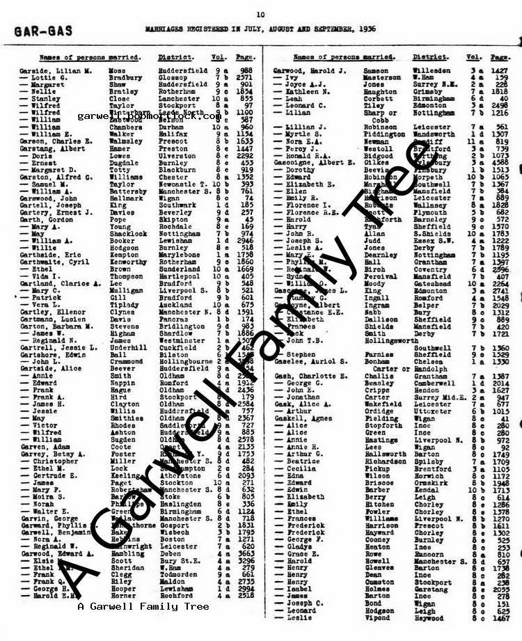 | Marriage of a Brother | Thomas Arthur GARWELL - View family 1942 (Age 32)