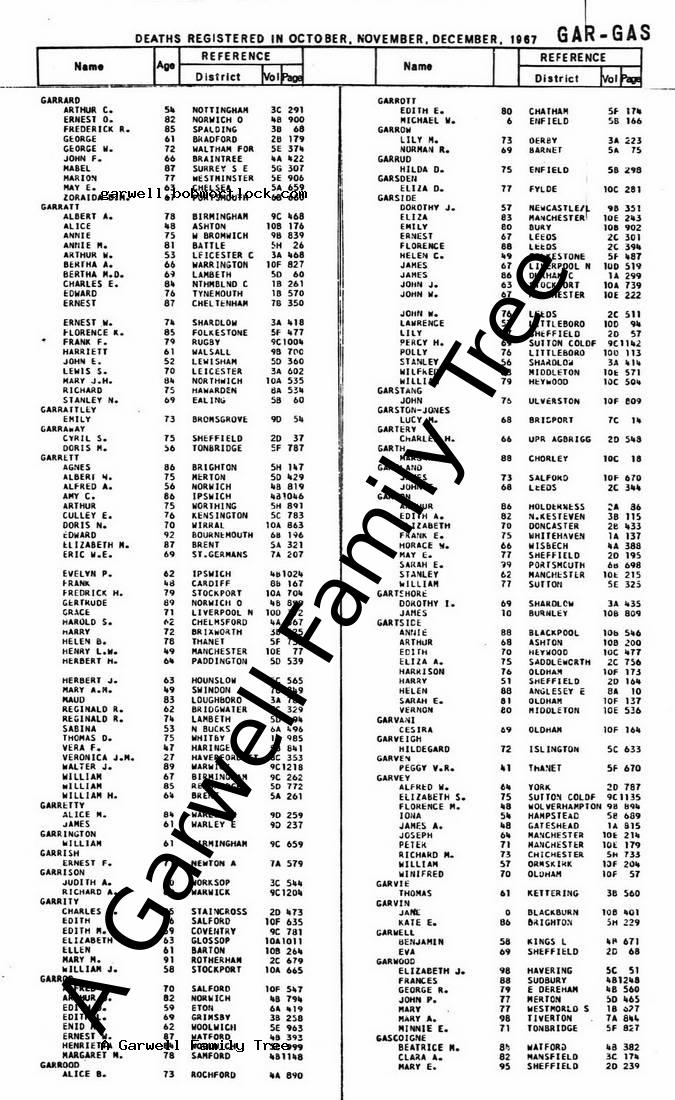 | Death of a Mother | 1957 (Age 47) Leverington, Cambridgeshire, England