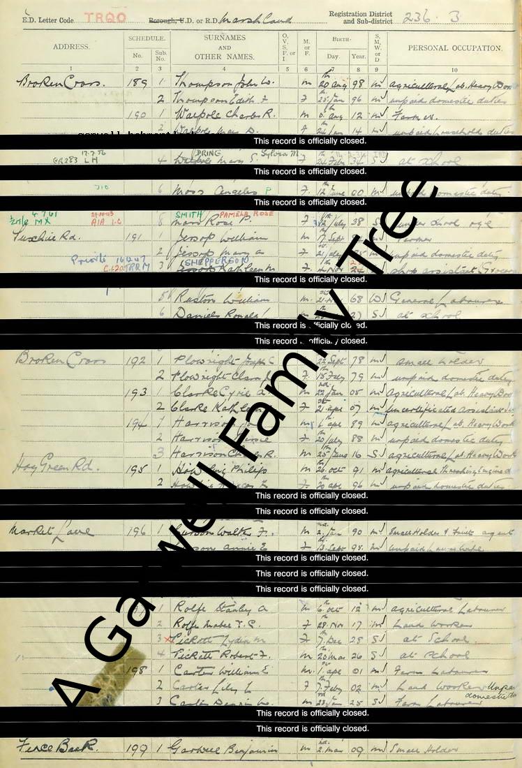| Census | 29 September 1939 (Age 30) Marshland, Wisbech, Norfolk, England Address: Fence Bank