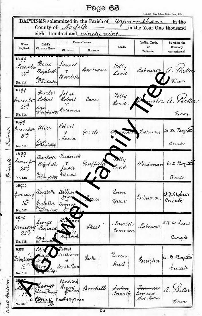| Baptism | 18 February 1900 Wymondham, Norfolk, England Address: The Parish Church |