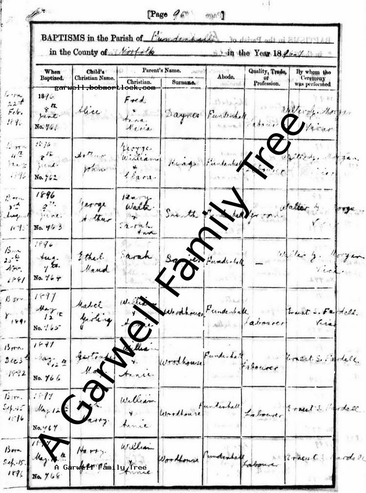 | Baptism | 8 June 1896 (Age 4 months) Fundenhall, Norfolk, England Address: The Parish Church |