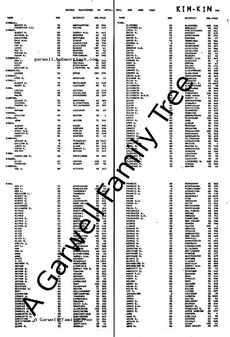 | Probate | 3 October 1963 (3 months after death) Norwich, Norfolk, England Note: Effect: £967 17s 11d to Ethel Florence King, Widow |