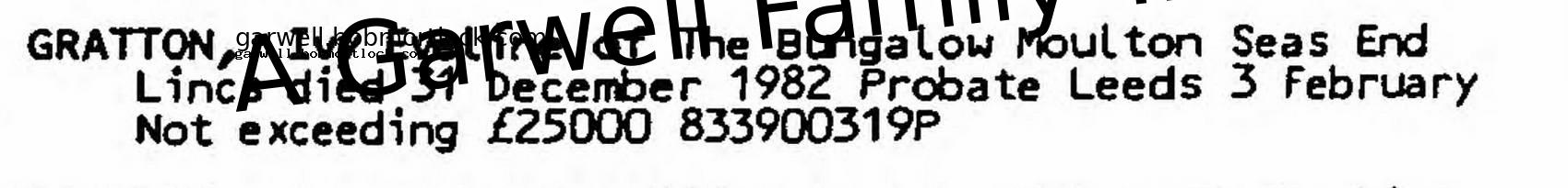 | Probate | 3 February 1983 (34 days after death) Leeds, Yorkshire, England Note: Effects: not exceeding £25,000 |