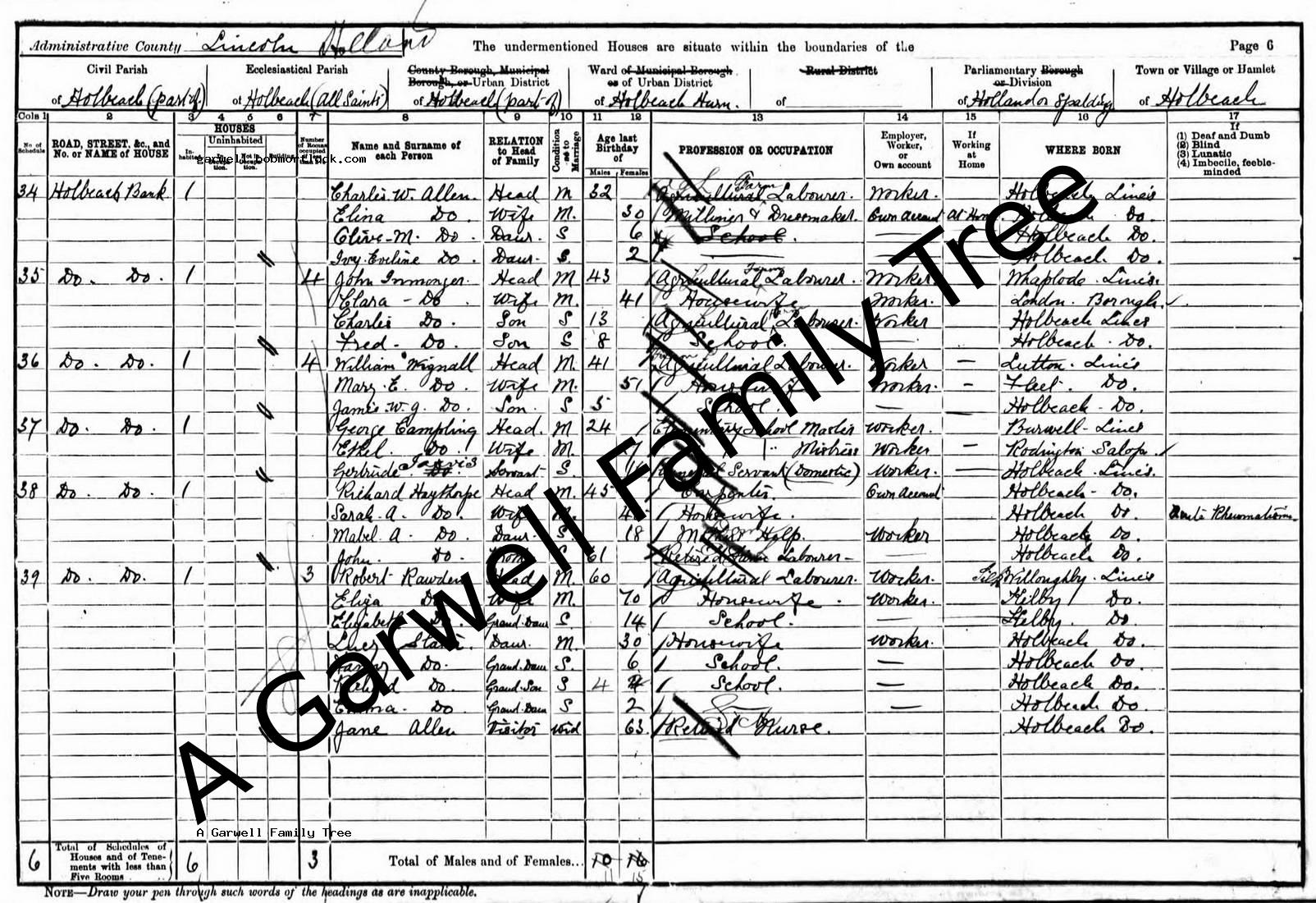 | Census | 31 March 1901 (Age 2) Holbeach, Lincolnshire, England Address: Holbeach Bank