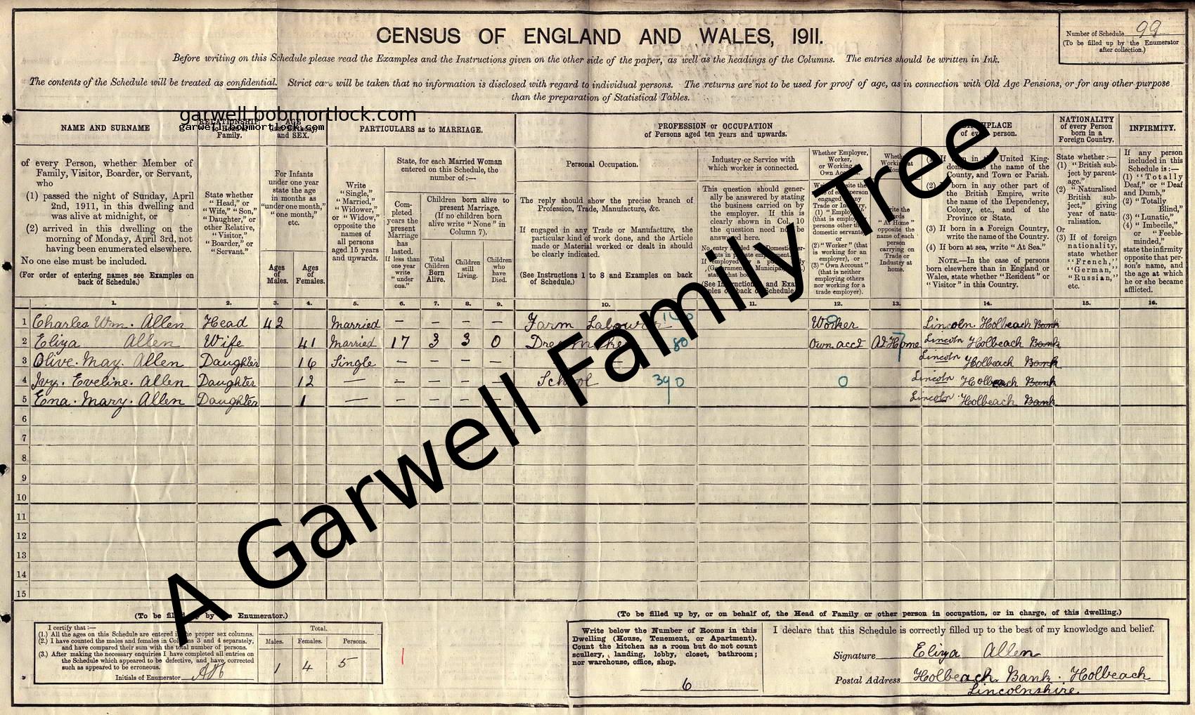 | Census | 2 April 1911 (Age 12) Holbeach, Lincolnshire, England Address: Holbeach Bank