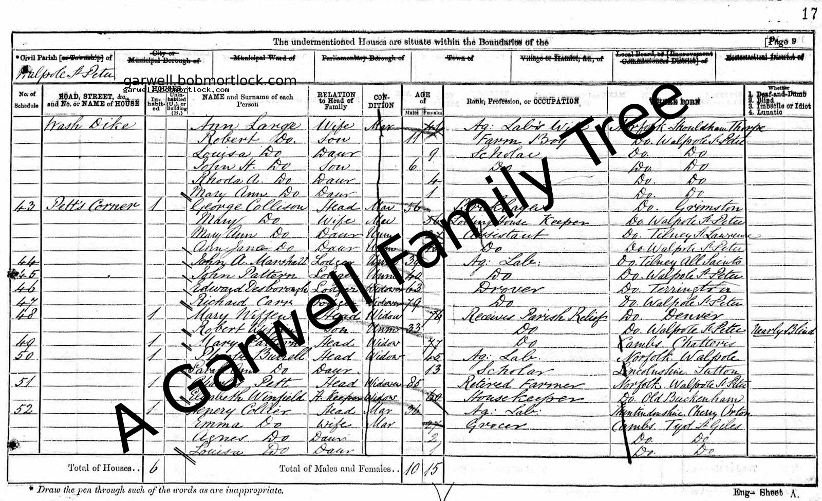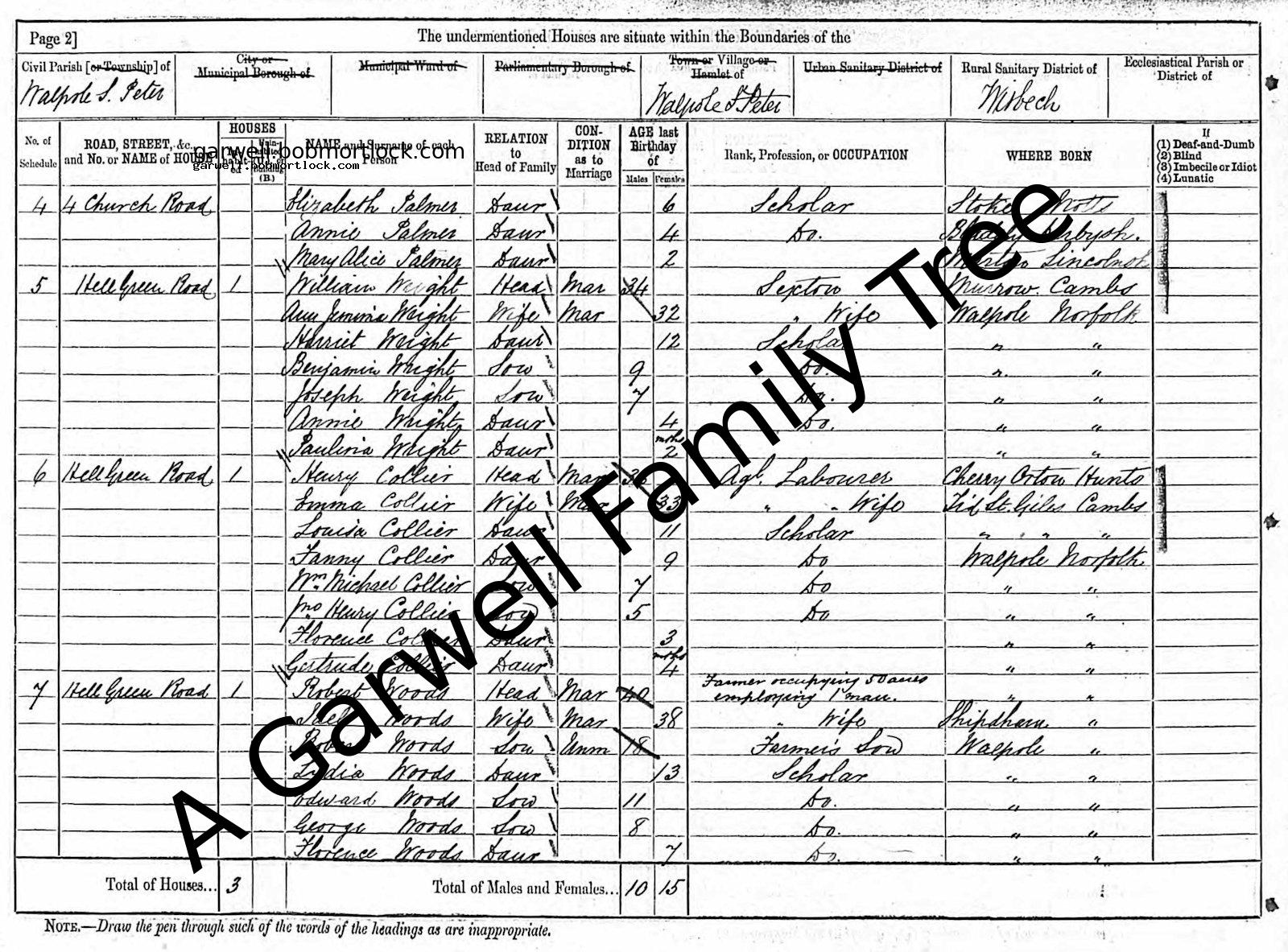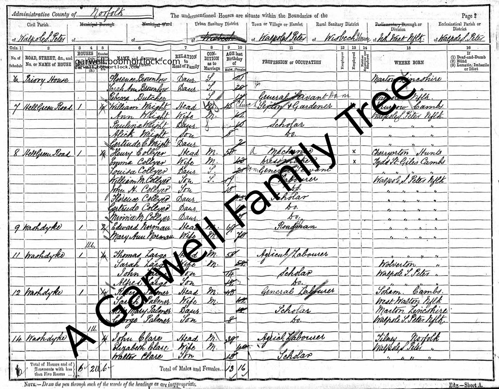 | Census | 5 April 1891 (Age 51) Walpole St Peter, Norfolk, England Address: Hell Green Road