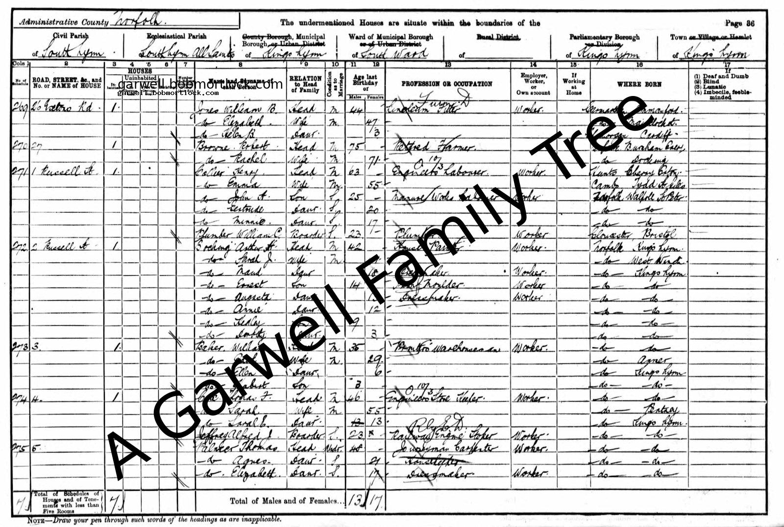 | Census | 31 March 1901 (Age 61) South Lynn, Norfolk, England Address: 1 Russell Street