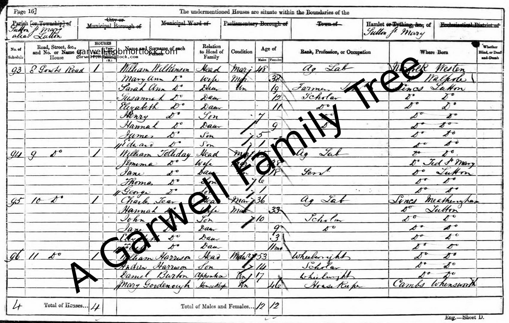 | Census | 7 April 1861 (Age 16) Sutton St Mary, Lincolnshire, England Address: 9 Gowls Road