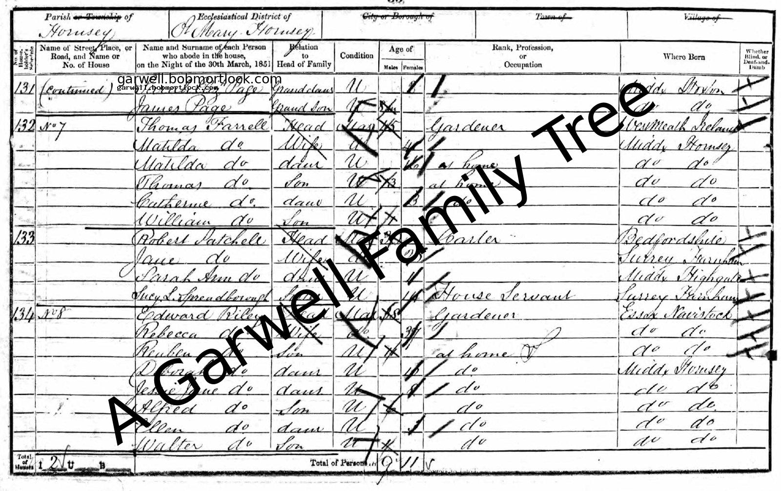 | Census | 30 March 1851 (Age 2) Edmonton, N London, England Address: 7 Maynard Cottages