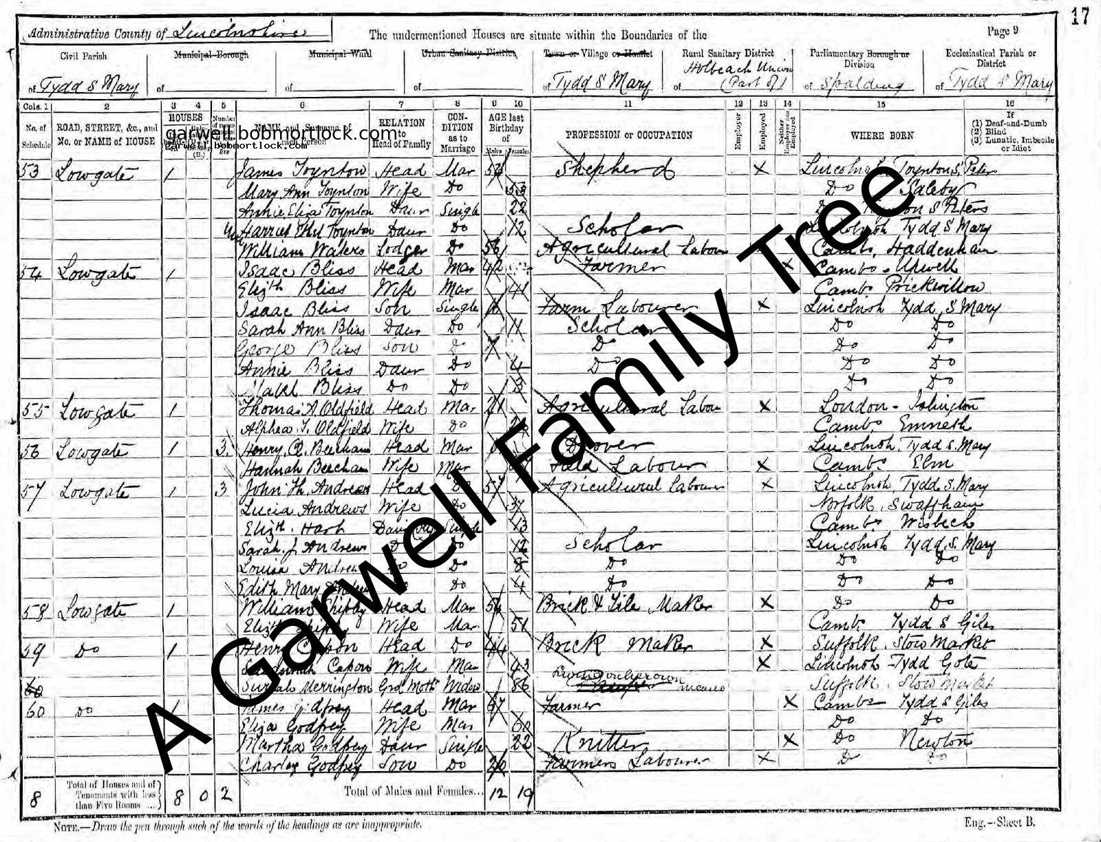 | Census | 5 April 1891 (Age 21) Tydd St Mary, Cambridgeshire, England Address: Lowgate