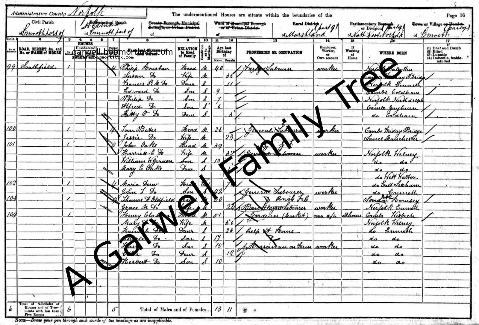 | Census | 31 March 1901 (Age 31) Emneth, Norfolk, England Address: Southfields