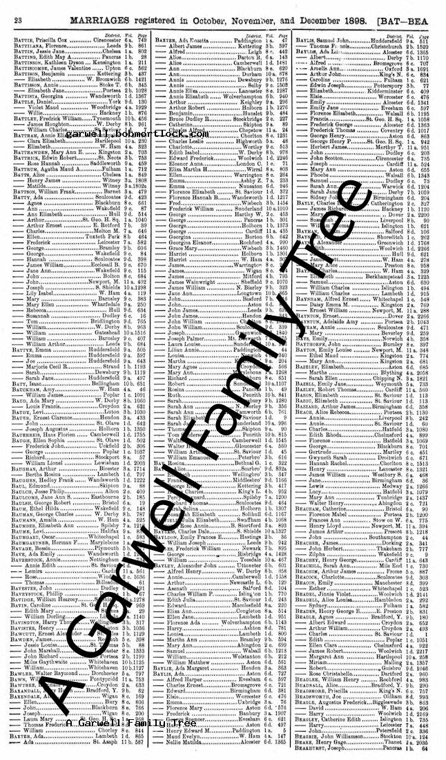 Religious Marriage: 1898 — Wisbech, Cambridge, England |