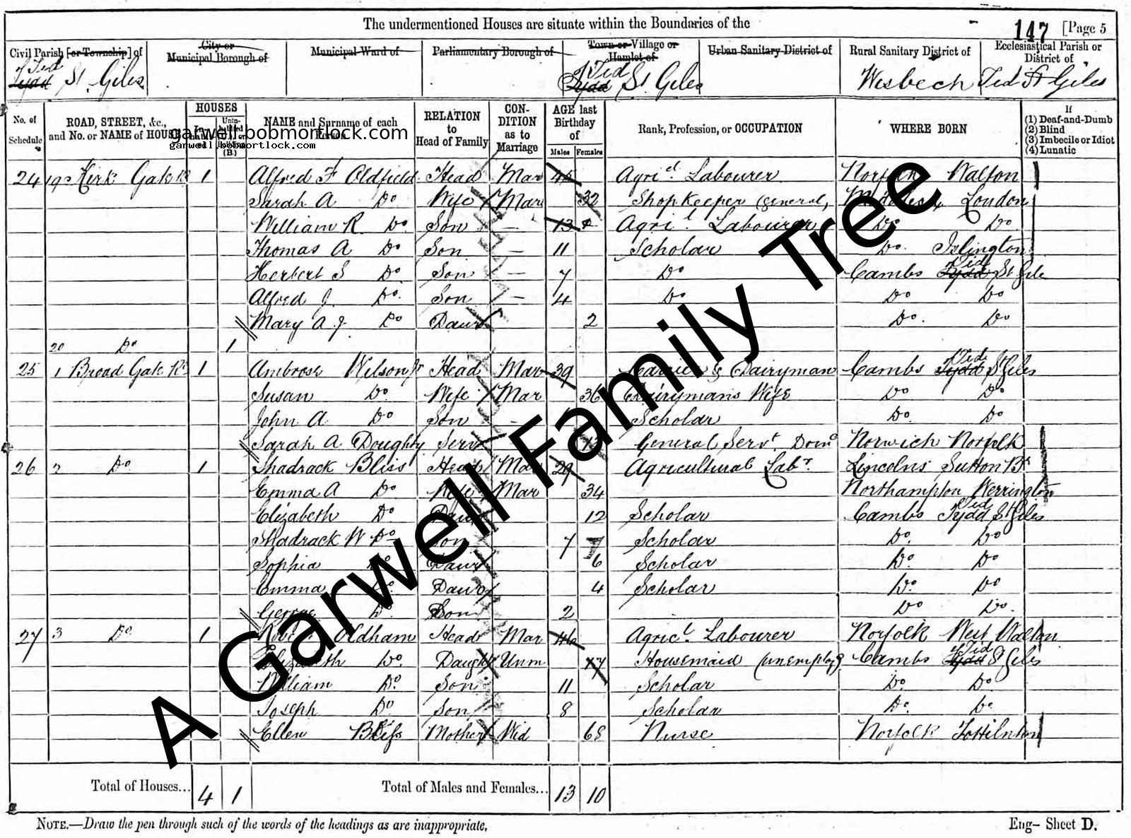 | Census | 3 April 1881 (Age 7) Tydd St Giles, Cambridgeshire, England Address: 19 Kirk Gate Road