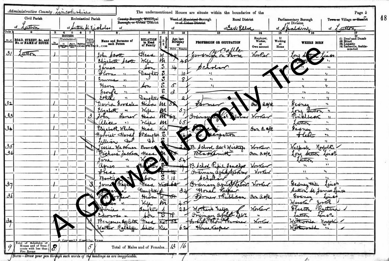 | Census | 31 March 1901 (Age 34) Lutton, Lincolnshire, England |