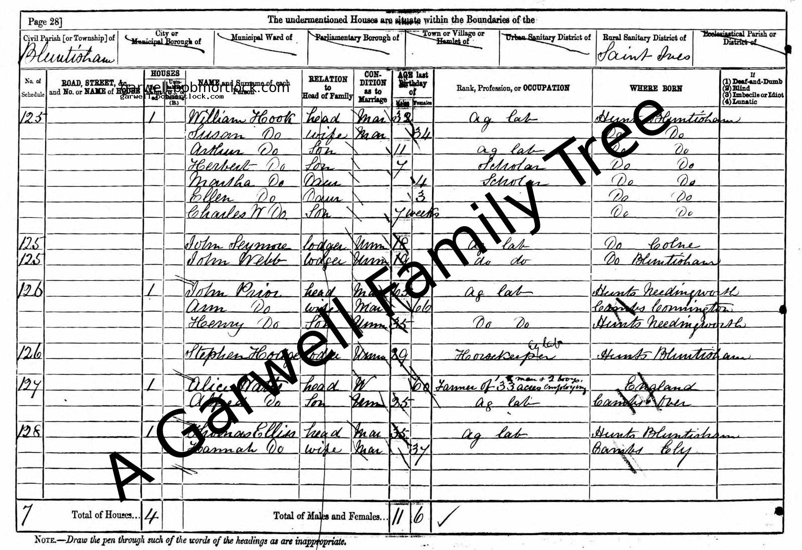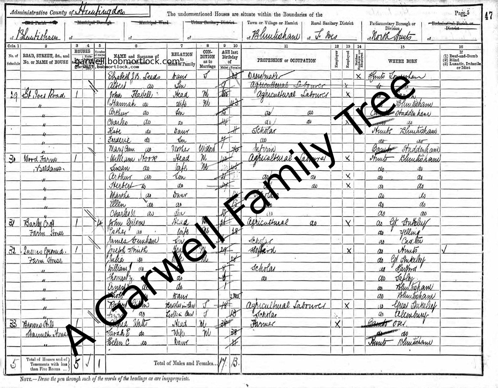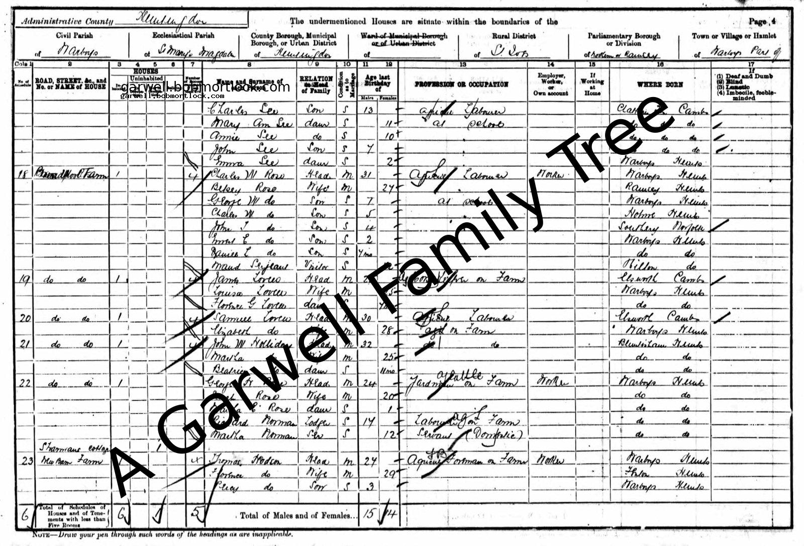 | Census | 5 April 1891 (Age 14) Bluntisham, Cambridgeshire, England Address: Wood Farm