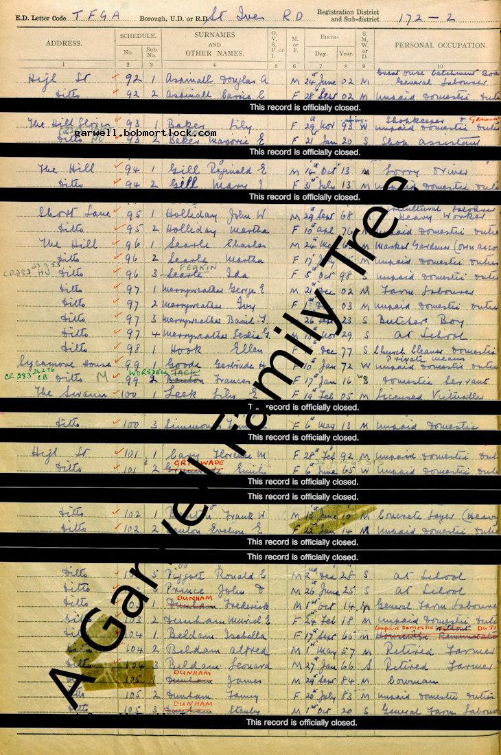 | Census | 29 September 1939 (Age 63) St Ives, Huntingdonshire, England Address: Short Lane