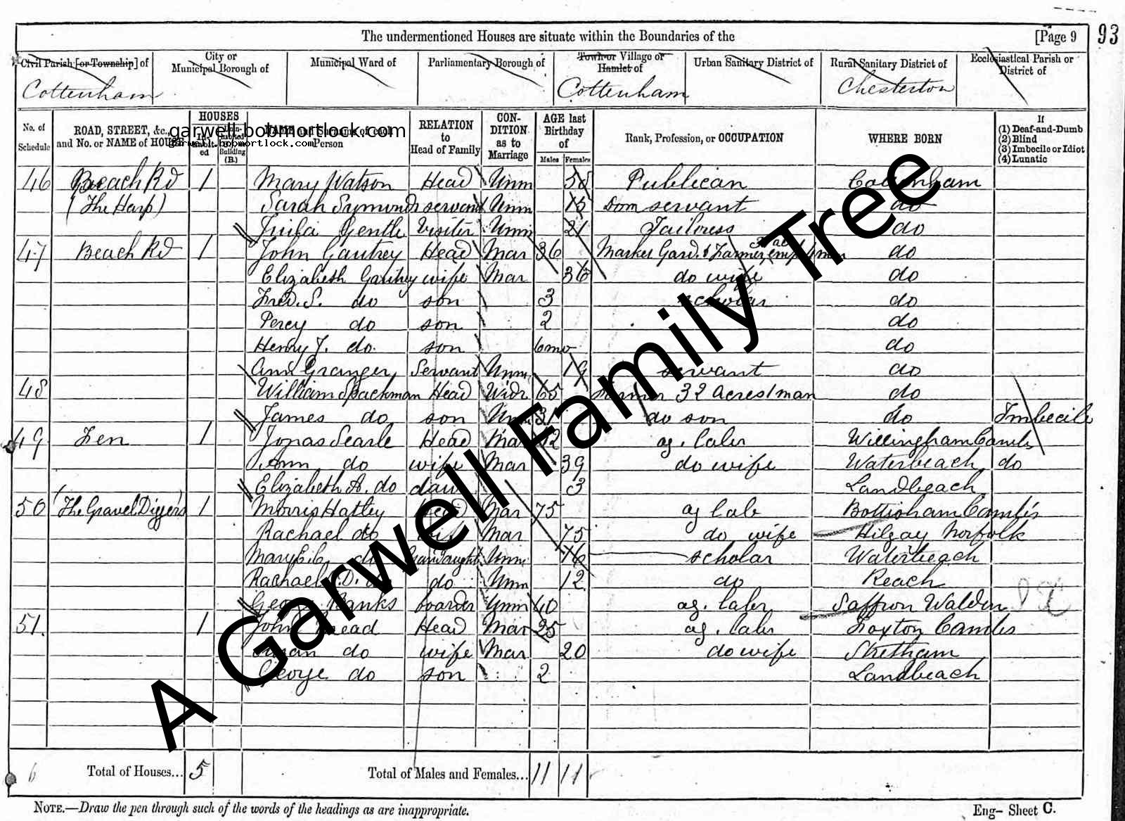 | Census | 3 April 1881 (Age 12) Cottenham, Cambridgeshire, England Address: "The Gravel Diggers"