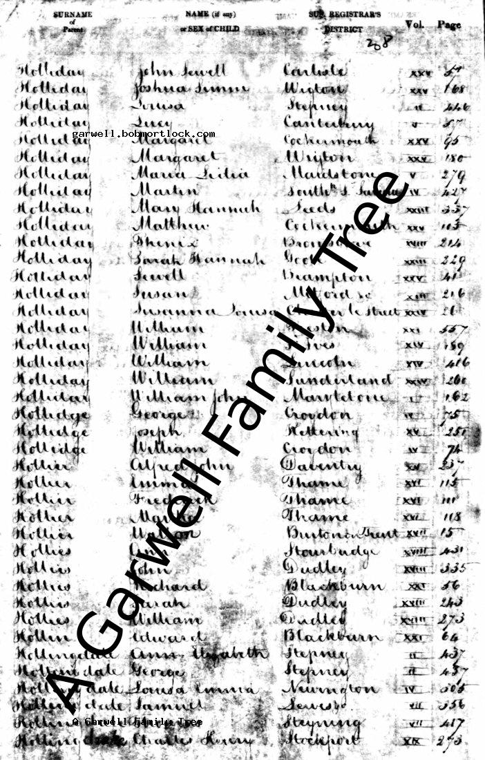 | Daniel HOLLIDAY + Sarah Ann CRABB - View family |