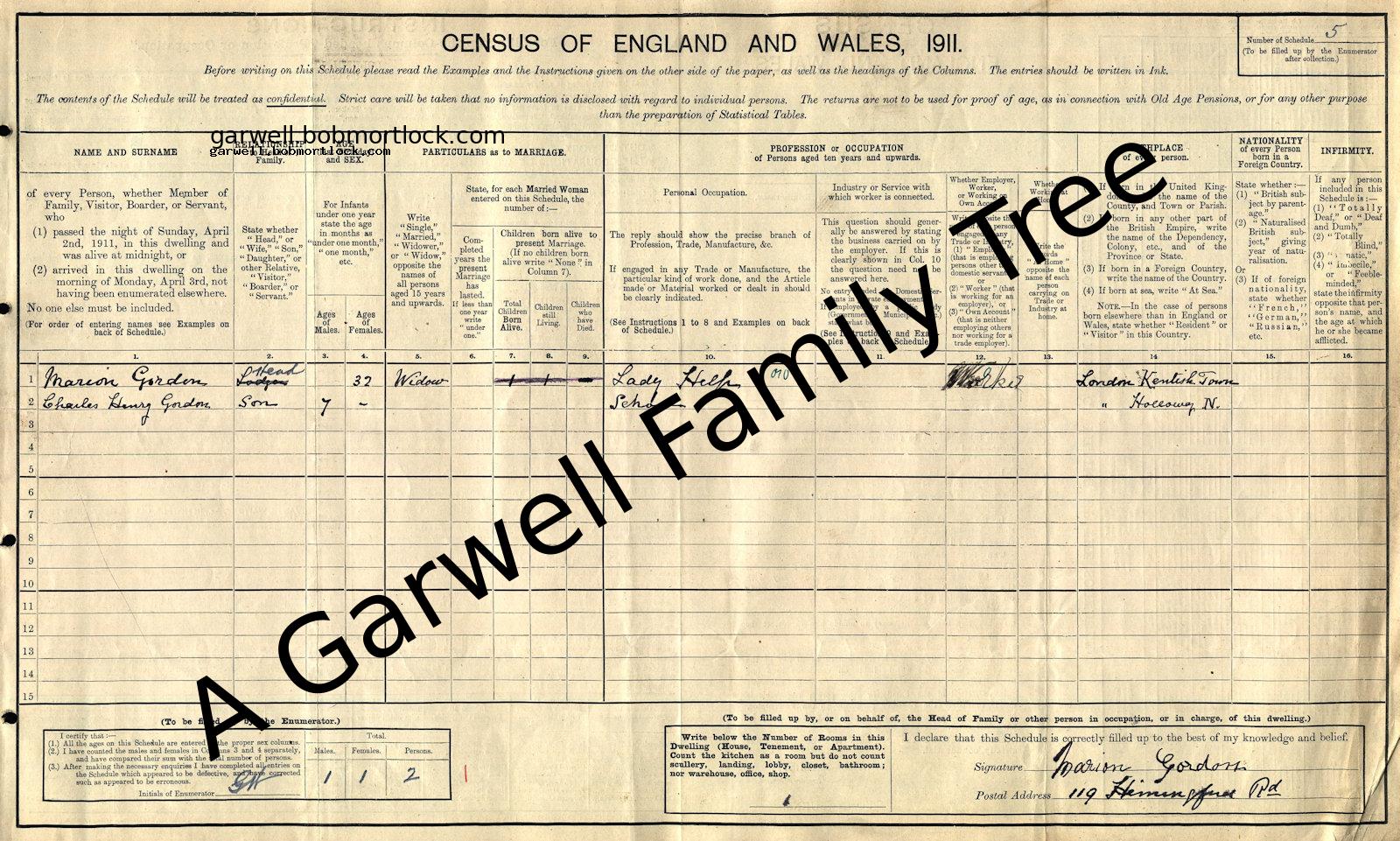 | Census | 2 April 1911 (Age 8) Islington, N London, England Address: 119 Hemingford Road
