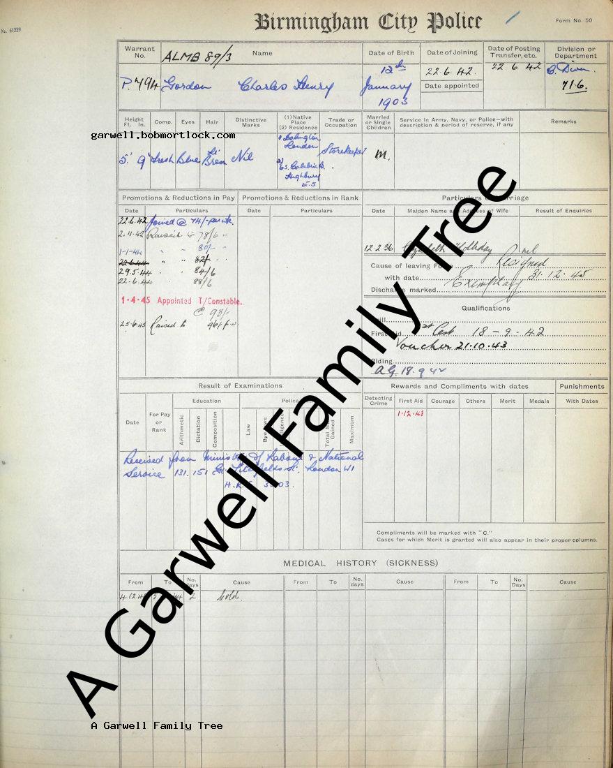 | Occupation | Police Officer 22 June 1942 (Age 39)Employer: Birmingham City Police |