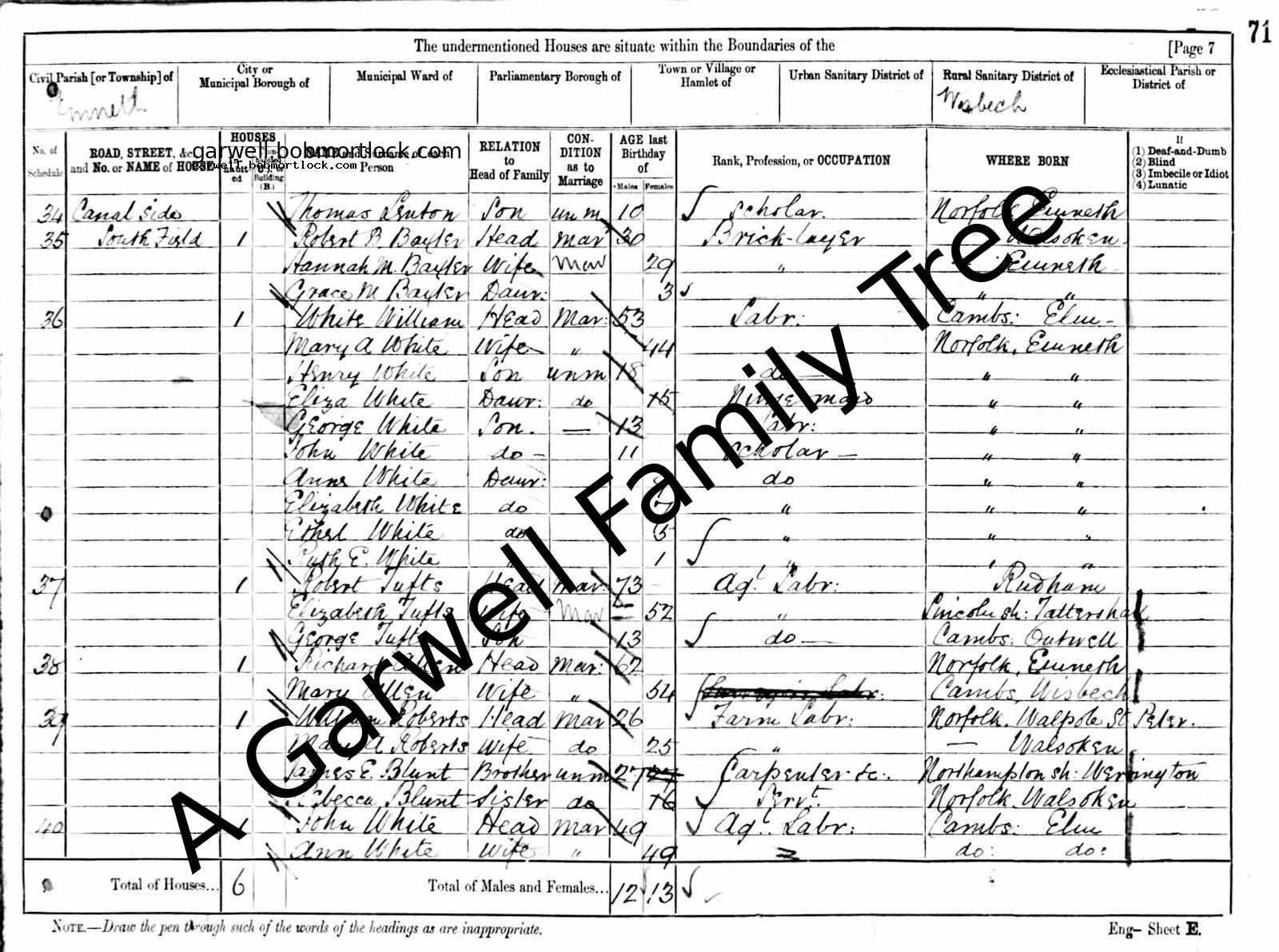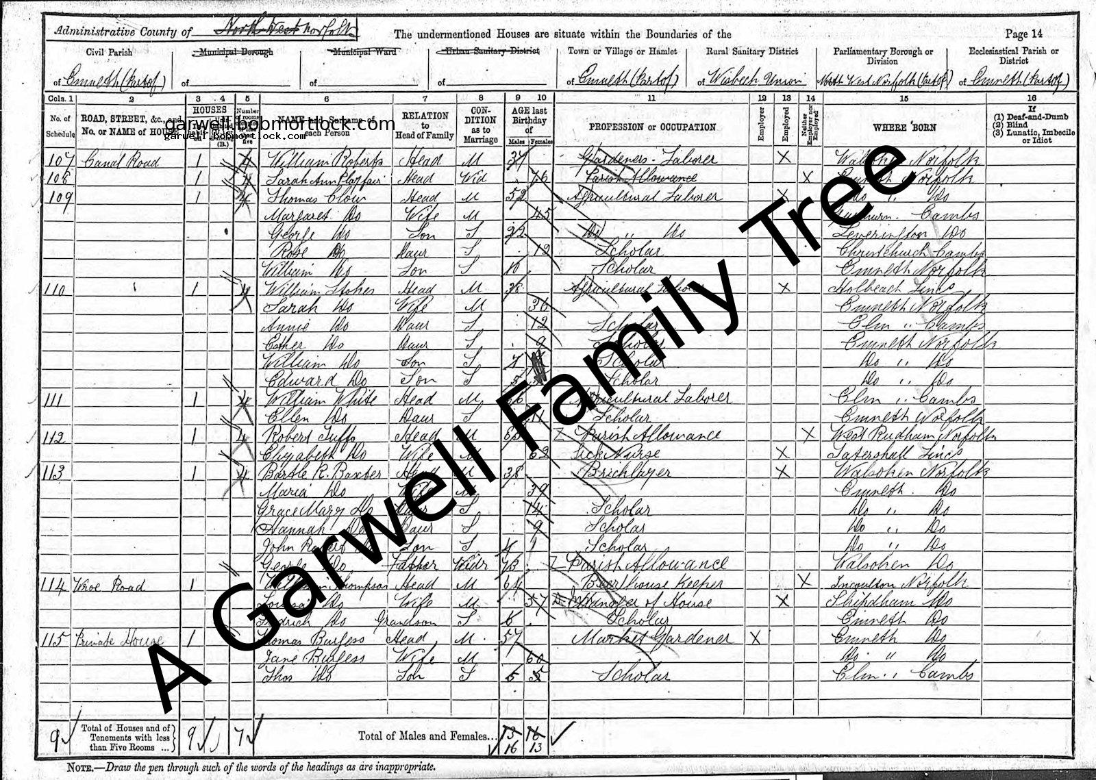 | Census | 5 April 1891 (Age 13) Emneth, Norfolk, England Address: Canal Road