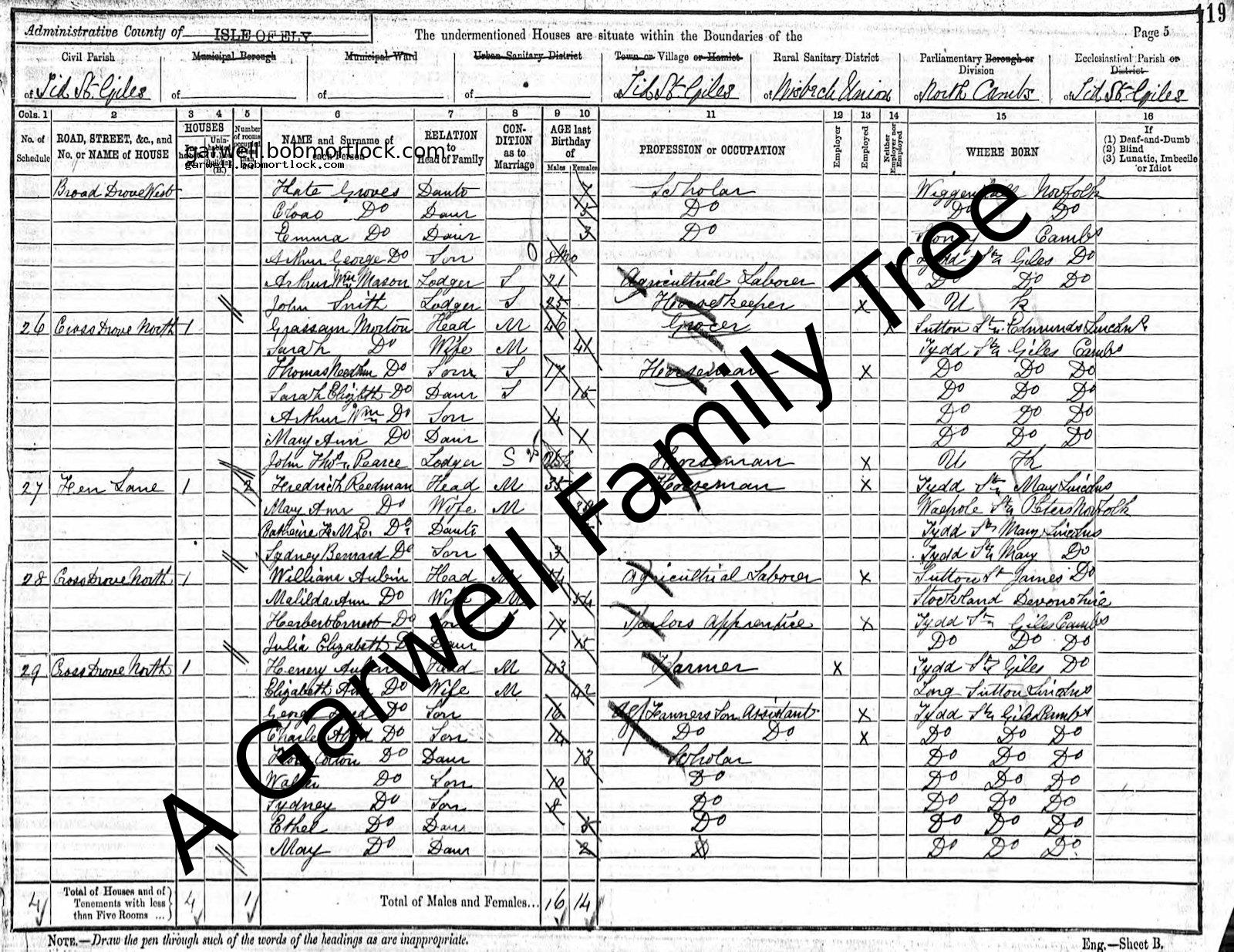 | Census | 31 March 1901 (Age 27) Tydd St Giles, Cambridgeshire, England Address: Church Lane