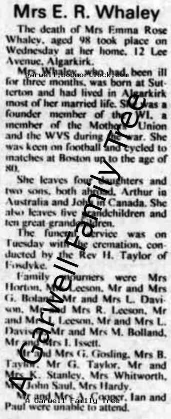 | Death | 23 April 1974 (Age 93) Algarkirk, Lincolnshire, England Address: 12 Lee Avenue |